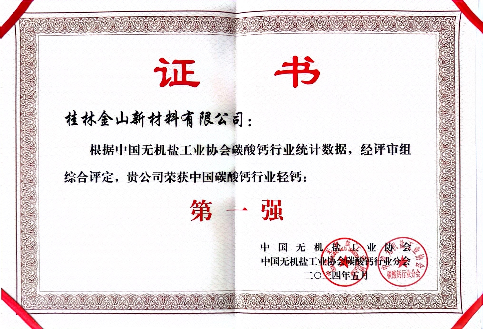 “中國碳酸鈣行業(yè)輕鈣第一強(qiáng)”